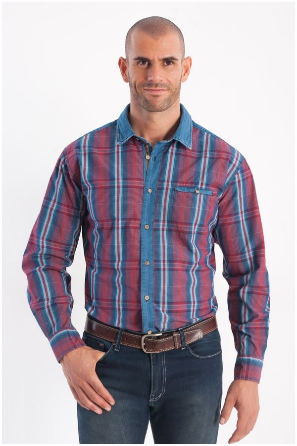 Lange mouw geruiten casual overhemd van het merk Monte Carlo dat is gemaakt van 100% katoen. Dit shirt heeft één borstzak met een knoopje met een lusje en is afgewerkt met een denimstof aan de binnenkant van de kraag, de manchet, het schouderstuk en aan de knopenlijst. Knopen met hout-effect. Zwaar gewassen tijdens de productie voor een mooie "vintage-look" en daardoor ideaal bij elke jeansbroek.