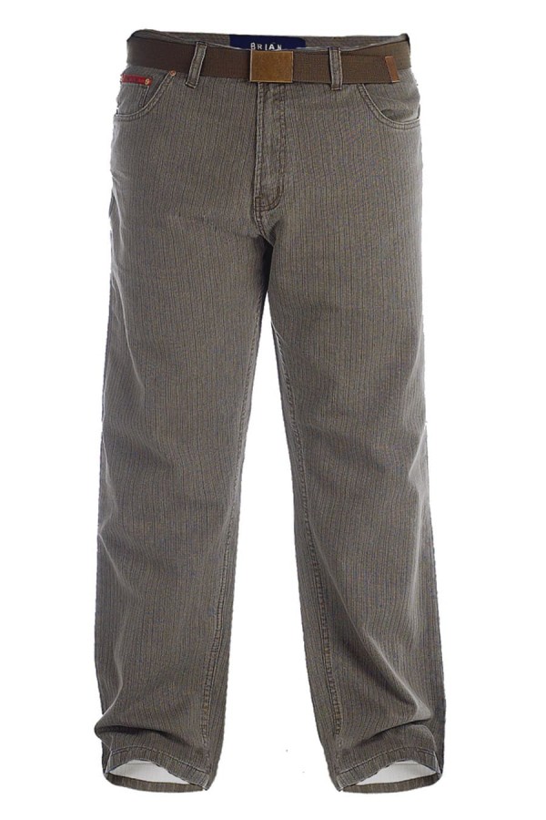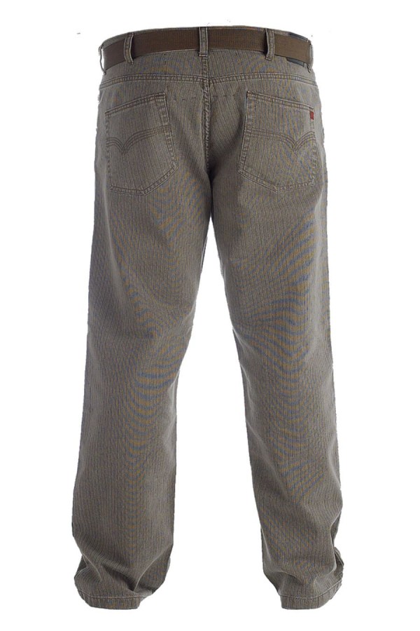 Lengtematen 5-pocket broek met bijpassende riem van het merk D555 (T1554 MARIO black). Deze vrijetijdsbroek heeft een verticaal ribbeltjespatroon en is tijdens het productieproces gewassen met enzymen waardoor de 100% katoenen stof zeer sterk is en zacht aanvoelt. Fancy stiksel op de achterzakken. Lengte van kruis tot onderkant pijp (langs binnenkant) is 95cm en dus ideaal voor de lange man tot ca. 2.10m. Gewassen met een used-look effect.