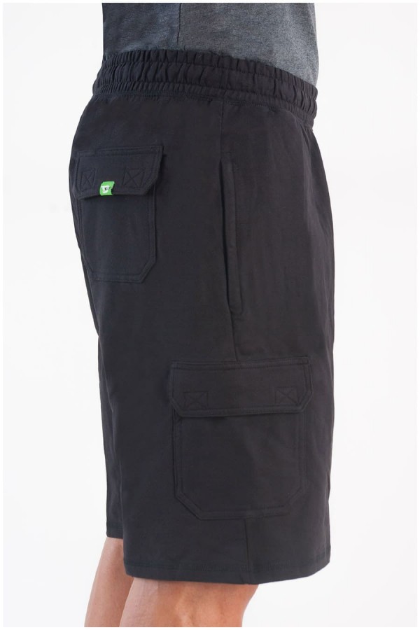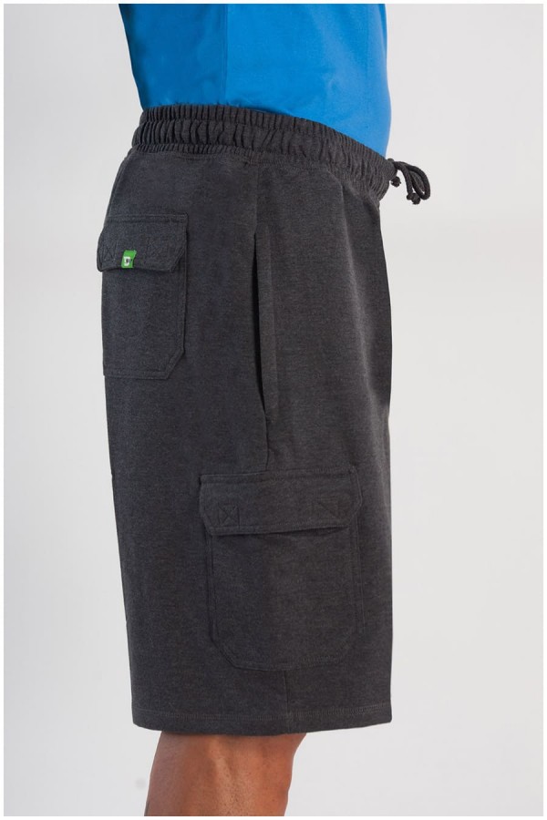 Korte sportbroek gemaakt van 100% katoenen fleecestof (sweat). Deze grote maten sportshort van het merk D555 (Duke Clothing - KS2030 John) heeft aan elke zijkant een steekzak met rits en een opgestikte cargozak met klep met klittenband. Ook op de achterkant bevinden zich 2 zakken met klep met klittenband. De elastische tailleband is verstelbaar met tonale koordjes.