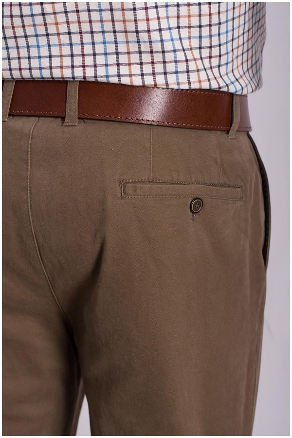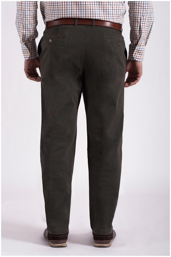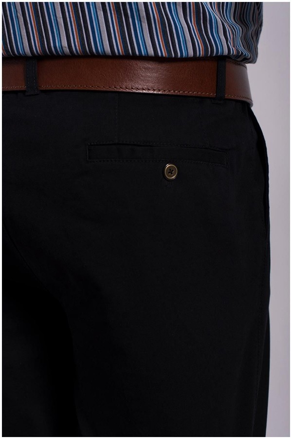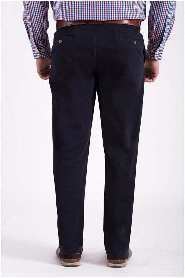 Sportieve, elastische katoenen chino van het merk Plus Man. Deze vrijetijdsbroek heeft geen bandplooien en is gemaakt van stof bestaande uit een mix van katoen en een beetje elastaan erin waardoor de broek heerlijk elastisch en flexibel is. Steekzakken aan de zijkant en achterop twee zakken met knoopje.