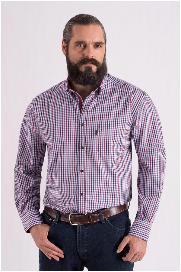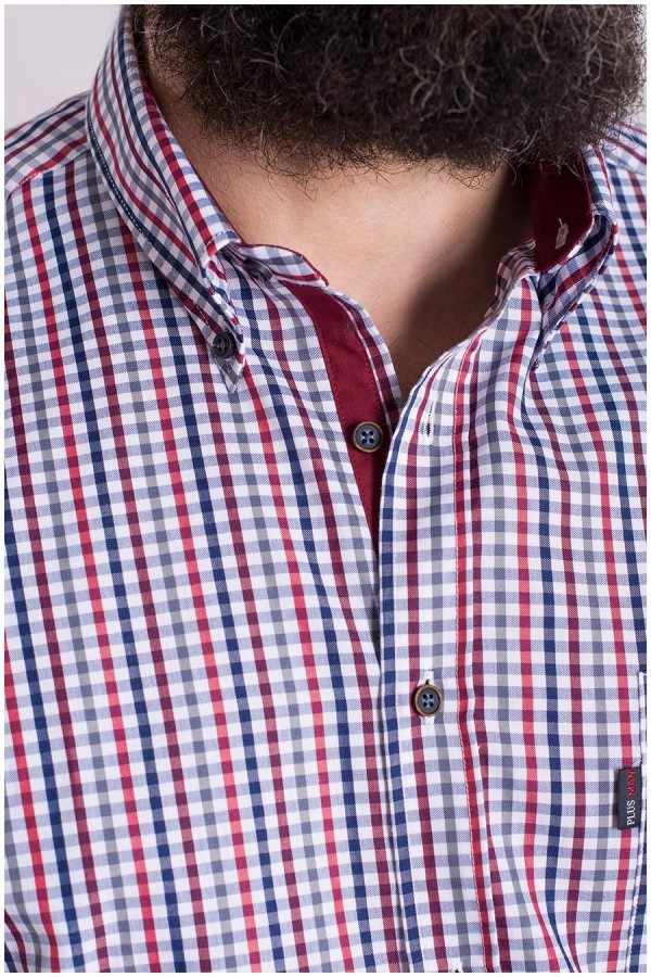 Geruiten lange mouw casual shirt van het merk Plusman. Het overhemd heeft een borstzakje en een button-down kraag. De knopenlijst de binnenkant van de kraag en de binnenkant van de manchetten zijn voorzien van een uni contrastkleurige stof.