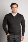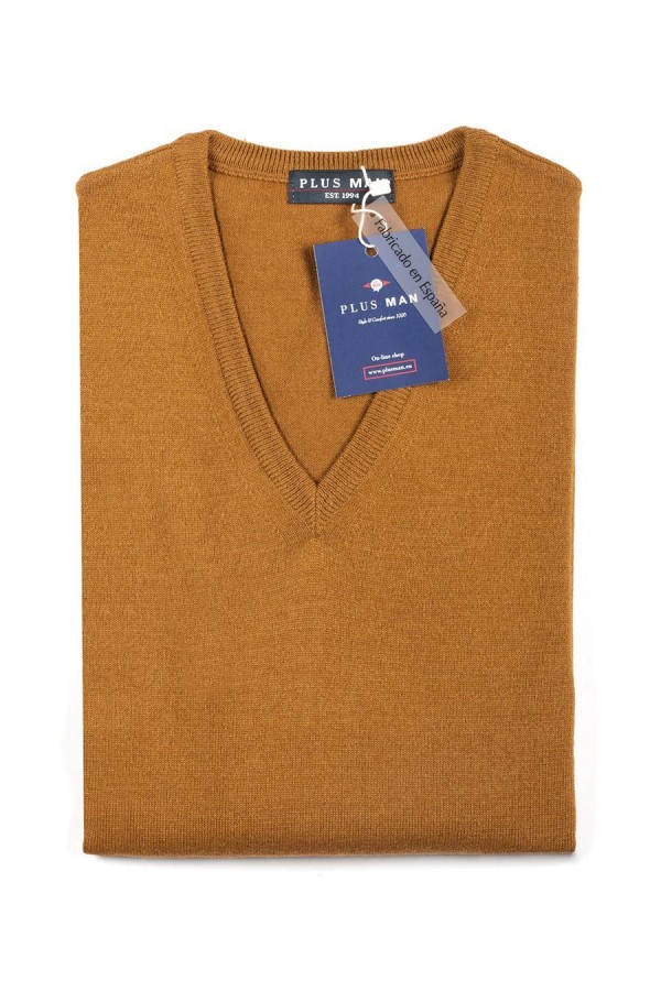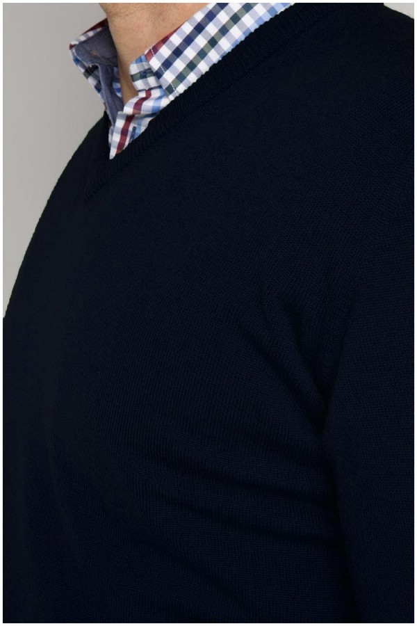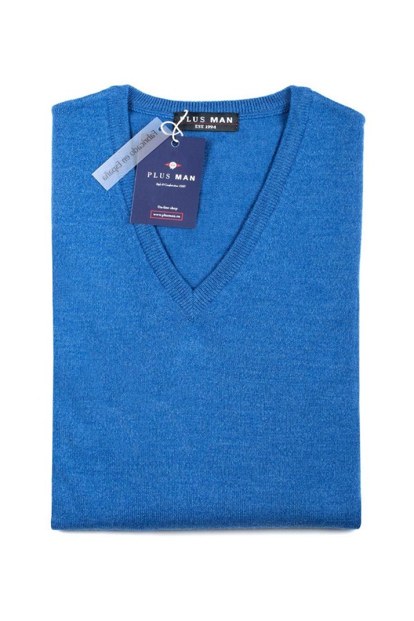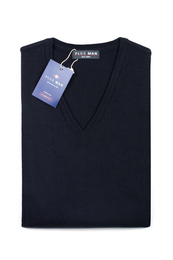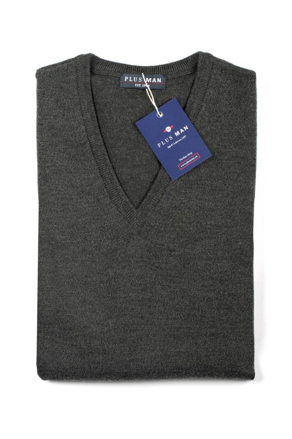 Effen pullover met V-hals van het merk Plusman. Deze grote maten trui is gemaakt van mix van 50% wol en 50% acryl in een anti-pilling kwaliteit. De sweater is afgewerkt met een comfortabele ribstof aan de zoom, manchetten en kraag. Deze trui voeren wij ook in een lengtematen uitvoering.