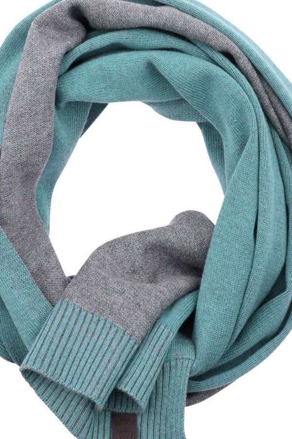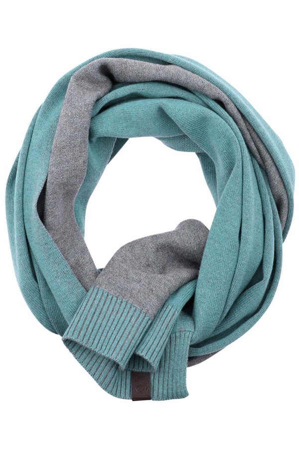 Deze katoenen sjaal van Casamoda is aan 2 kanten te dragen. Elke kant heeft een andere kleur. De ene kant is turquoise, de andere grijs.