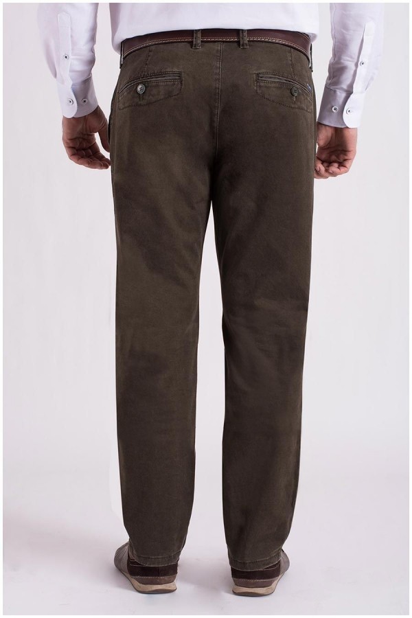 Elastische vrijetijdsbroek zonder bandplooi van het merk Pionier (model Robert). Deze chino is gemaakt van een zeer hoogwaardige katoen met elastan erin waardoor de broek lekker soepel draagt. Subtiele stippeltjes in de stof.