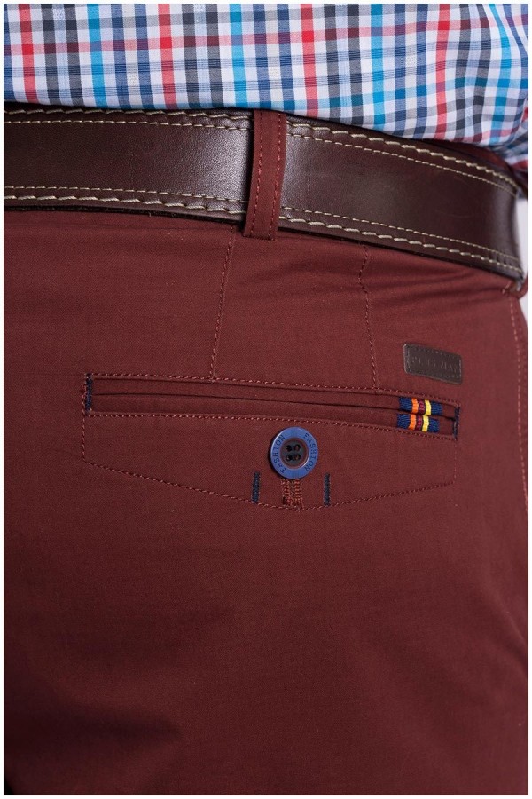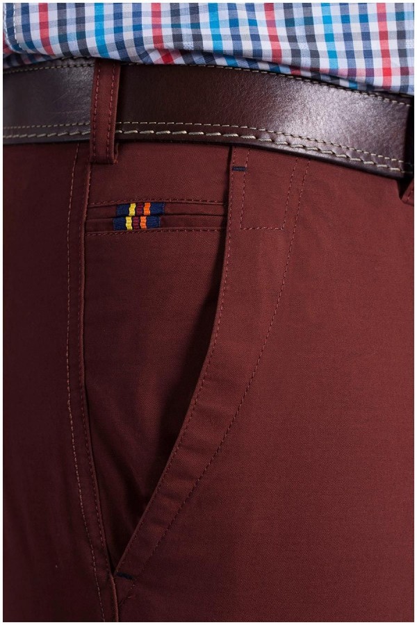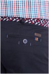 Sportieve, 100% katoenen casual broek van het merk Plus Man. Deze tijdens de productie gewassen 5-pocket broek zonder bandplooi is voorzien van diverse kleurrijke contrastdetails zoals contraststiksels en tapes op de diverse zakken. Steekzakken aan de zijkant en achterop twee zakken met knoopje.