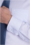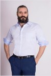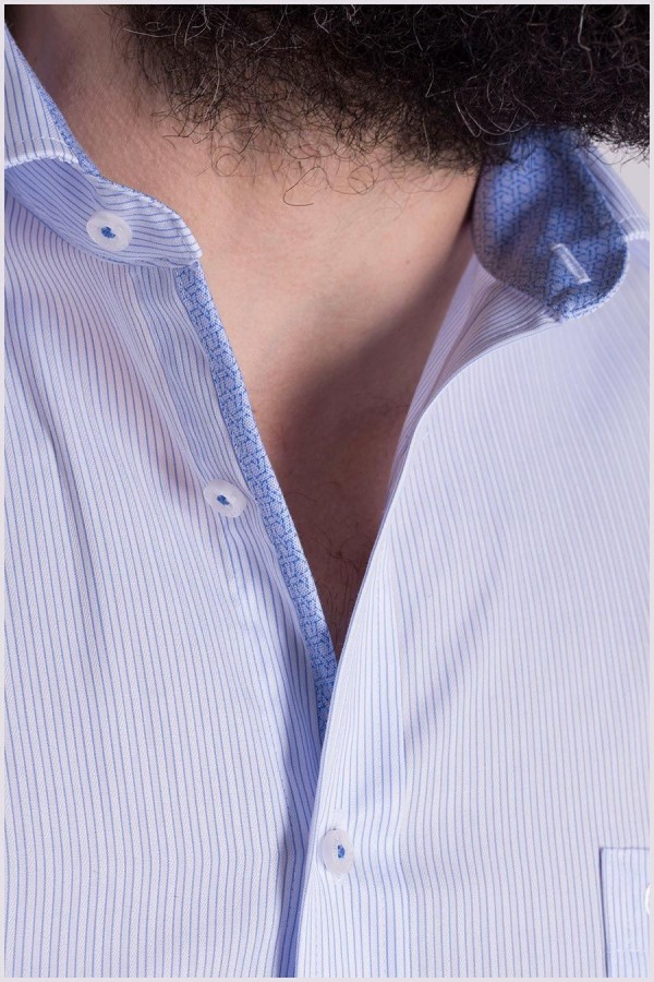 100% Katoenen Casamoda dress overhemd met lange mouw. Het overhemd heeft een fijn lichtblauw gestreept patroon, dus te combineren met vrijwel elk kostuum, colbert en pantalon. De binnenkant van de kentkraag en de knopenlijst zijn voorzien van een band in contrasterende kleur en een contraststof met een gestipt patroon. Aan de linkerkant heeft dit overhemd een borstzakje voorzien van Casamoda logo borduur.