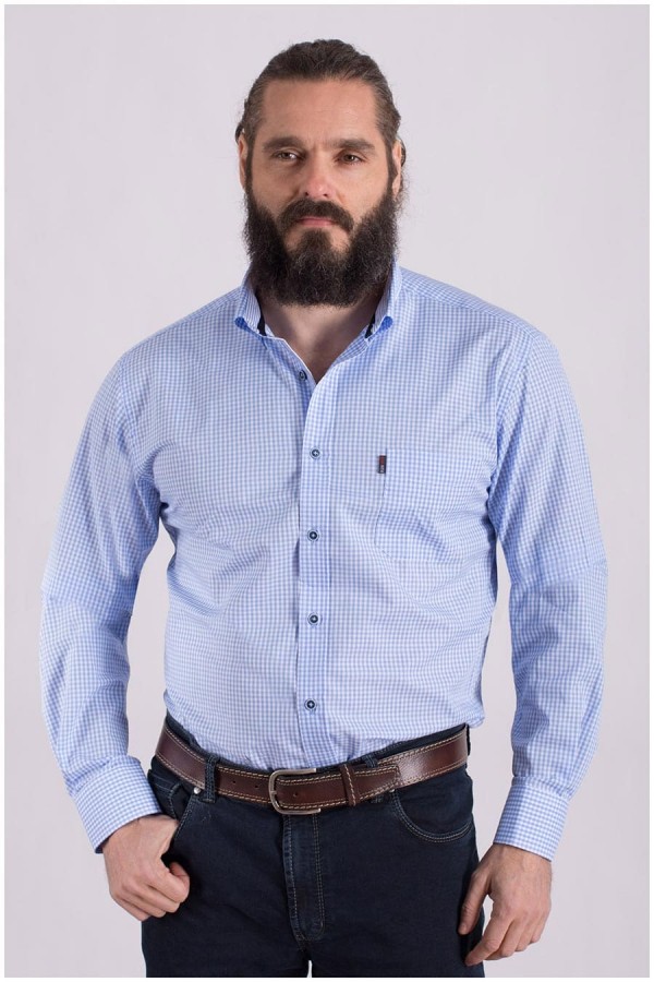Vichy-ruiten extra lange mouw overhemd van Plusman.