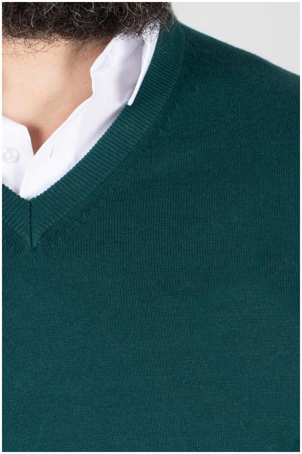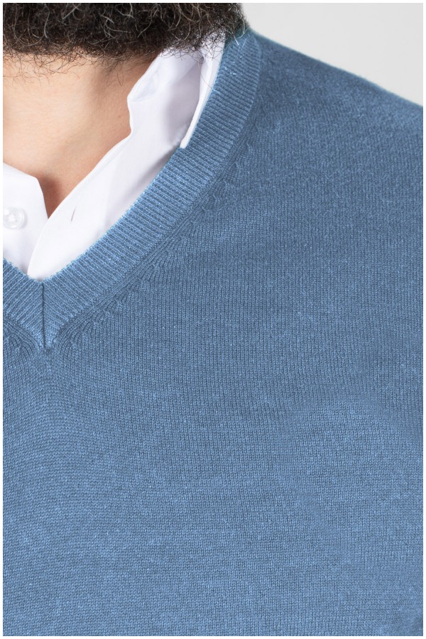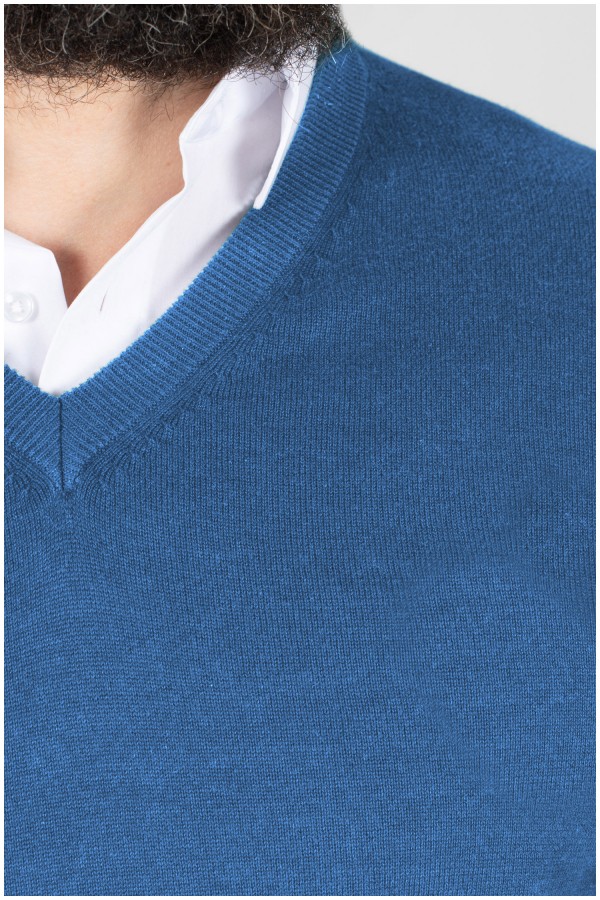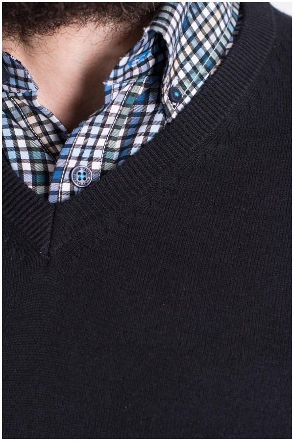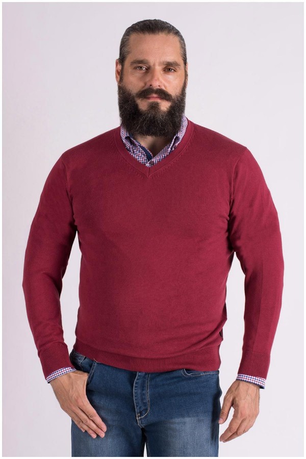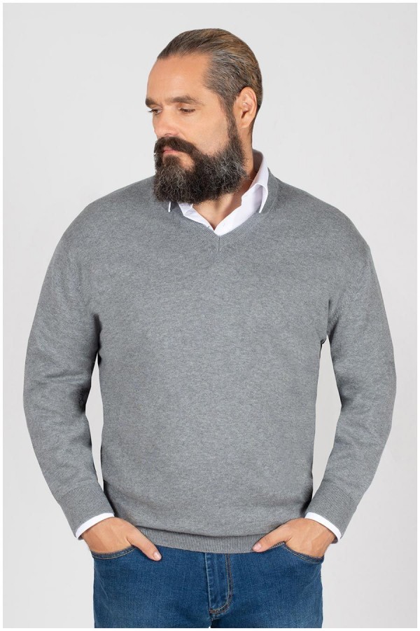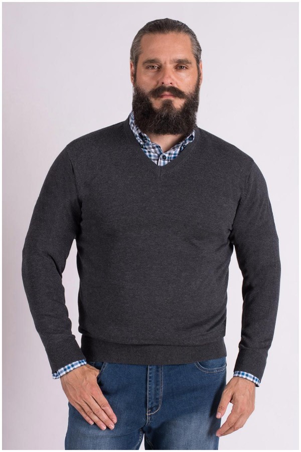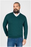 Unikleurige trui met V-hals van het merk Kitaro (art.nr. 69347). De grote maten trui is gemaakt van 100% katoen. Met contraststof met Kitaro-print erop in de kraag. Dit artikel is ook beschikbaar inÂ