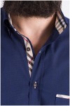 Overhemd met lange mouw van het merk Plusman. Uni overhemd met button-down kraag. De kraag, de knopenlijst en het borstzakje zijn afgewerkt. Dit overhemd voeren wij ook in een versie.