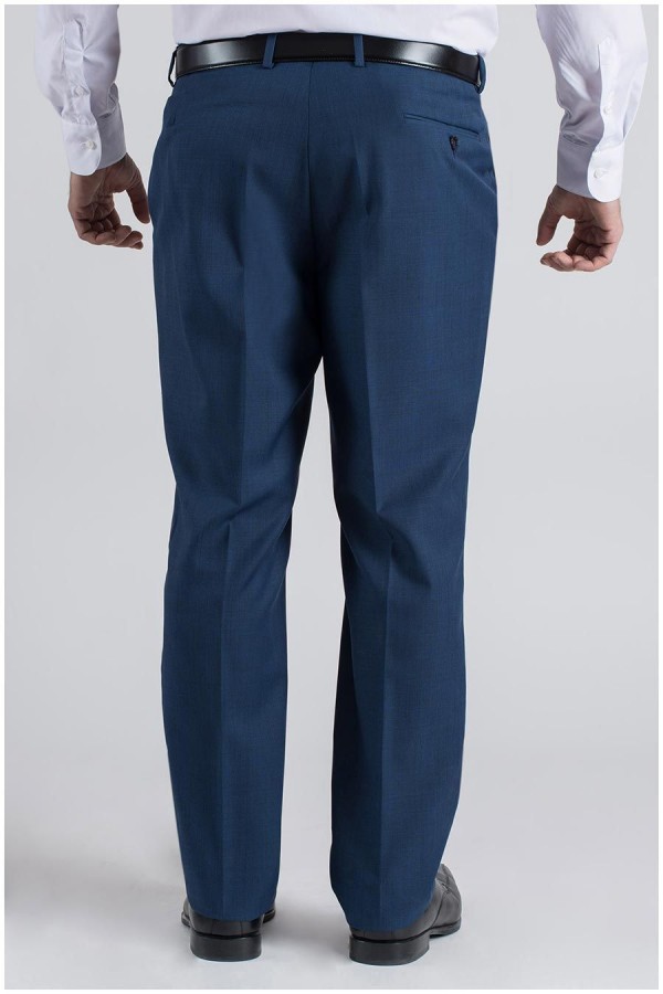 Wollen pantalon zonder bandplooi van Plusman. Deze executive nette broek heeft 2 steekzakken aan de zijkant en 2 achterzakken met knoopje.