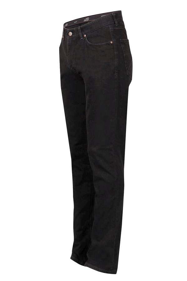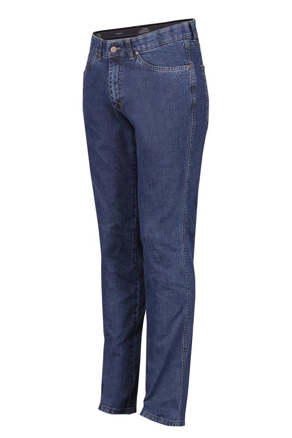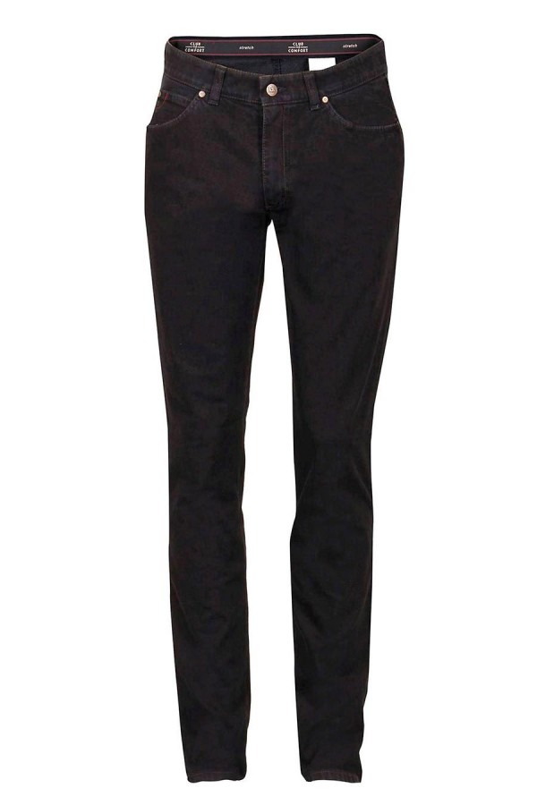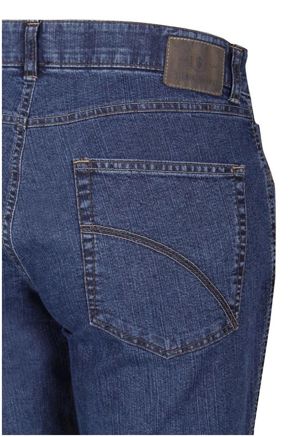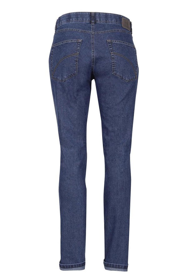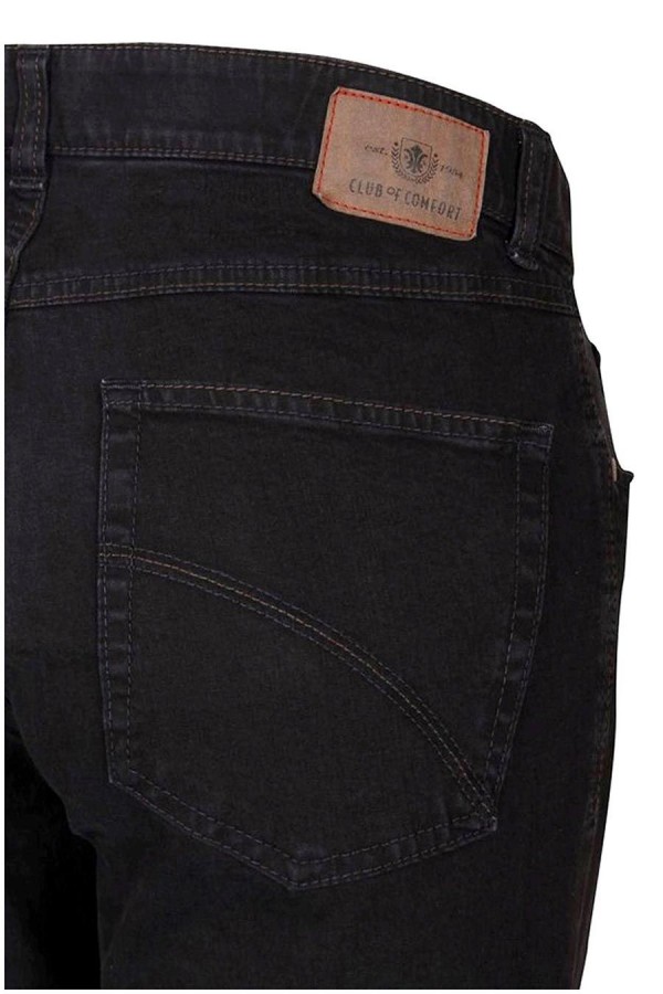 Zeer elastische 5-pocket jeansbroek van het Duitse topmerk Club of Comfort (James 4631). Fraaie afgeronde zijzakken, met een muntzakje aan de rechterkant. Elastische tailleband die tot 4cm meegeeft.
