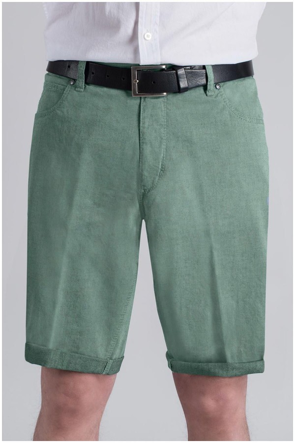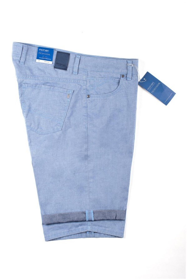Unikleurige korte broek in 5-pocket model van het merk Pionier (model Kevin). Deze stretch-bermuda is gemaakt van katoen met 3% elastaan, waardoor de broek prettig draagt en soepel valt. Op de broekband is aan de achterzijde een merklabel bevestigd.