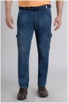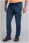 Cargobroek van het merk Koyote. Deze elastische jeansbroek heeft grote zakken aan de voorkant, zijkant en achterkant. De zakken aan de voorkant zijn steekzakken met aan de rechterkant een extra, verticaal, zakje. De cargozakken op de pijpen en aan de achterkant zijn voorzien van een klep met klittenband. Aan de achterkant zit een kleine merklabel. Deze cargojeans is ook zeer geschikt als worker. De jeansbroek wordt geleverd met bijpassende riem.