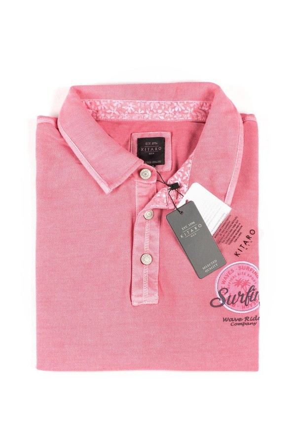 Met extra (rug)lengte: 100% katoenen korte mouw polo van het merk Kitaro. Deze polo voor lange mannen is gemaakt in een zeer mooie piquékwaliteit en heeft een geborduurde, tonale badge op de borst. Verder is het poloshirt voorzien van rijke metalen knopen en van zijsplitten aan de onderkant om de bewegingsvrijheid te bevorderen. De kraag is aan de binnenkant afgewerkt met een bedrukte contraststof met bloemetjesmotief. Met elastische ribstof aan de uiteinden van de mouwen.