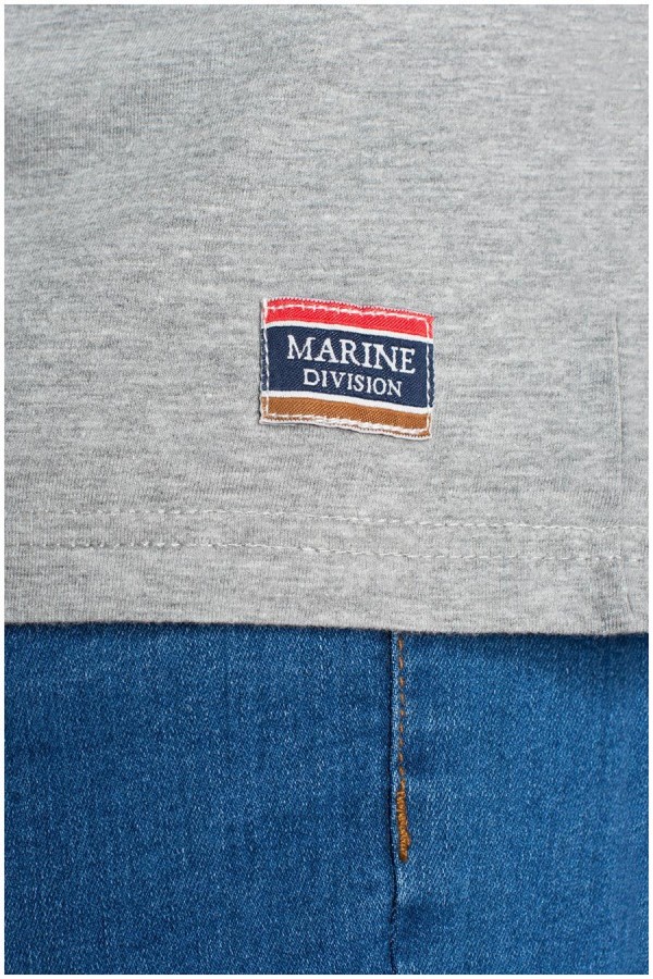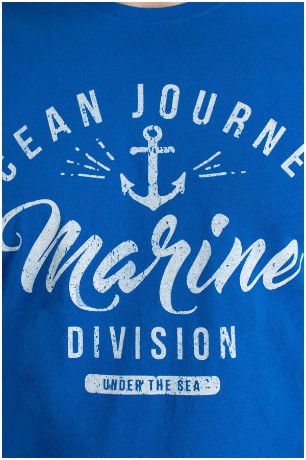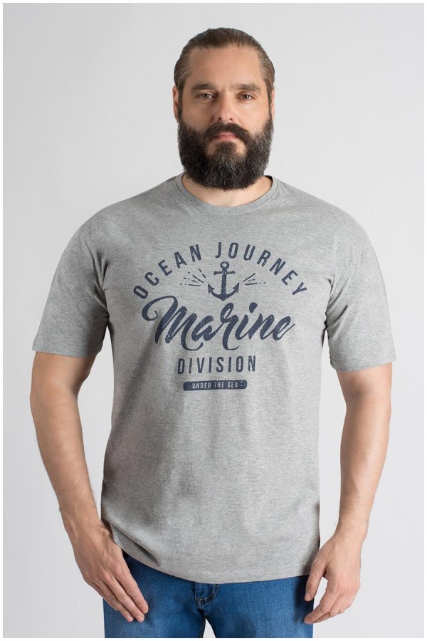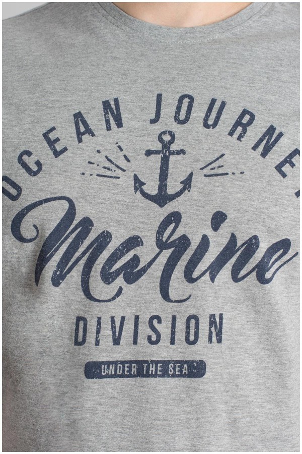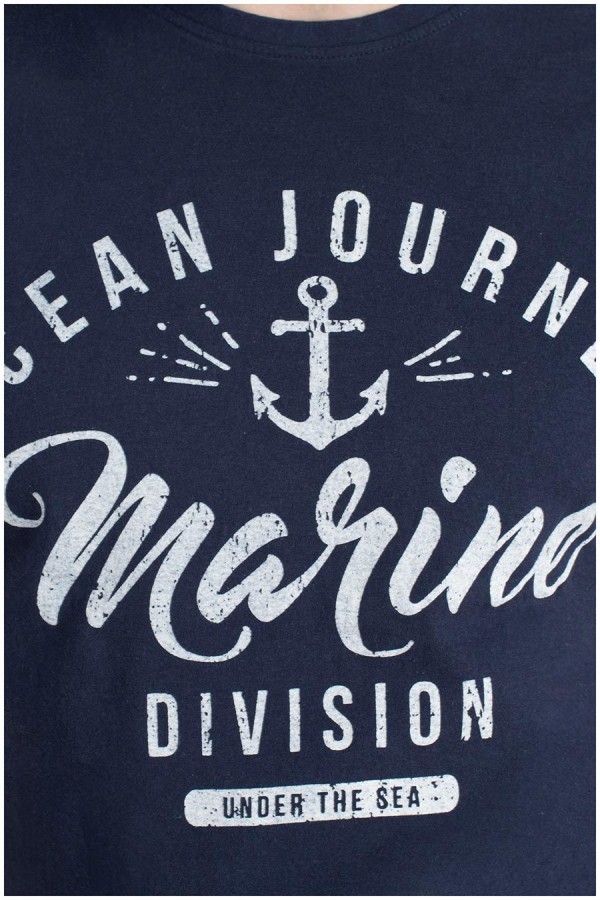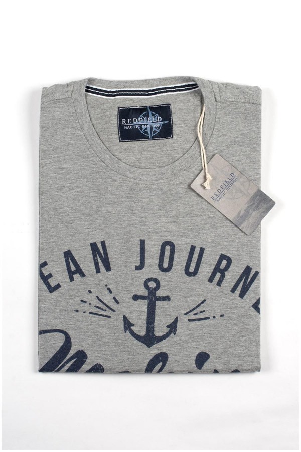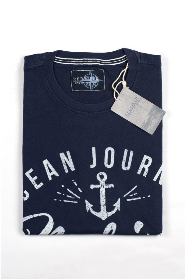 Unikleurig korte mouw t-shirt van het merk Redfield (art. 11913015) met grote maritieme tekstprint op de borst. Dit shirt heeft een ronde hals en is aan de onderkant voorzien van een kleine badge.