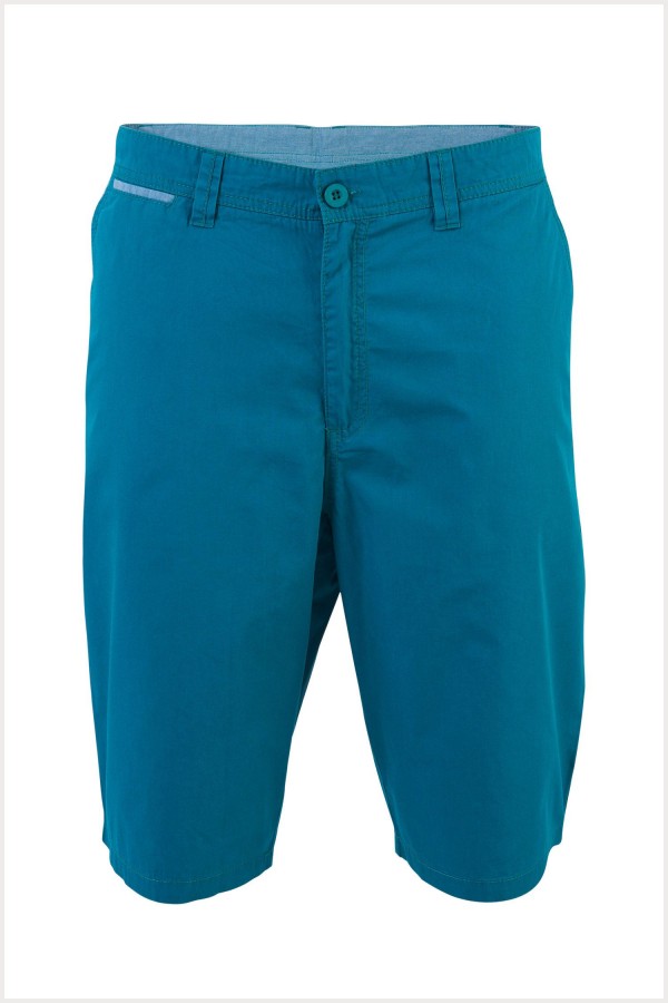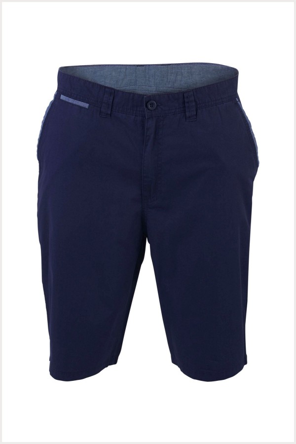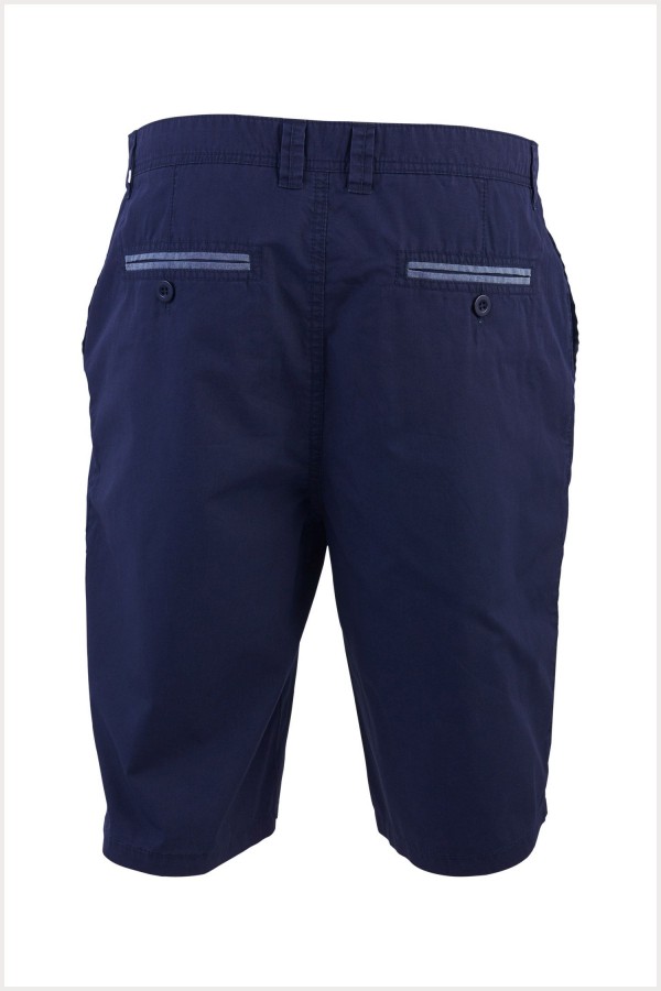 Effen poplin shorts gemaakt van 100% katoen. Deze grote maten bermuda in chino model heeft 2 steekzakken en 2 achterzakken, elk voorzien van contrastpaspels.