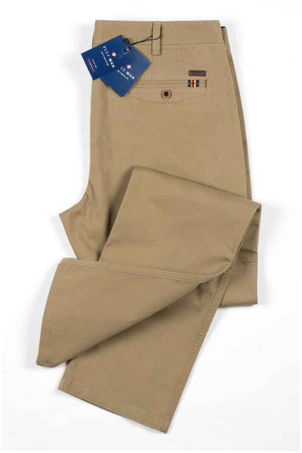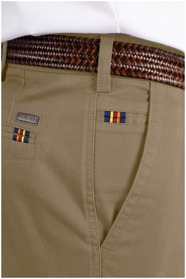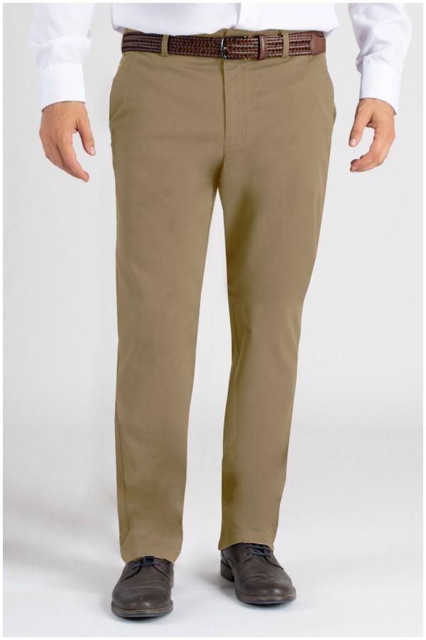Extra lange chino van het merk Plusman, gemaakt van elastisch katoen.