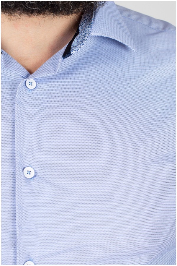 Effen lange mouw business overhemd van het merk Plusman. In de stof is een klein structuurtje ingeweven. Dit shirt heeft een moderne widespread kraag en is gemaakt van hoogwaardige poplin kwaliteit. De binnenkant van de kraag is afgewerkt met een gedessineerde contraststof.