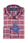 Plus Man lange mouw ruiten casual shirt met button-down kraag die aan de binnenkant is voorzien van een unikleurig contraststof. Deze contraststof komt ook terug bij de manchetten en de knopenlijst. Op de linkerborst bevindt zich een borstzakje.