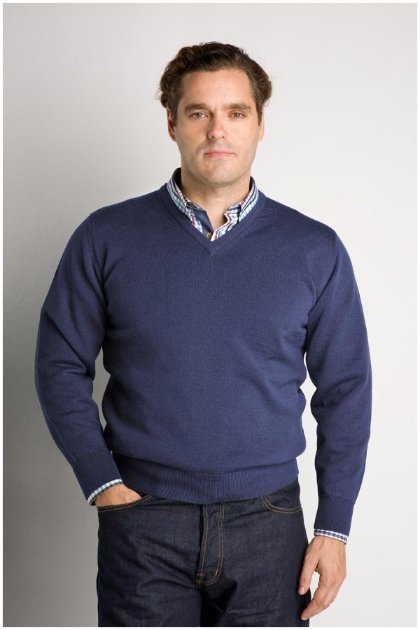 Uni pullover met V-hals van het merk Plus Man. Deze trui is gemaakt van 50% wol en 50% acryl. Anti-pilling.