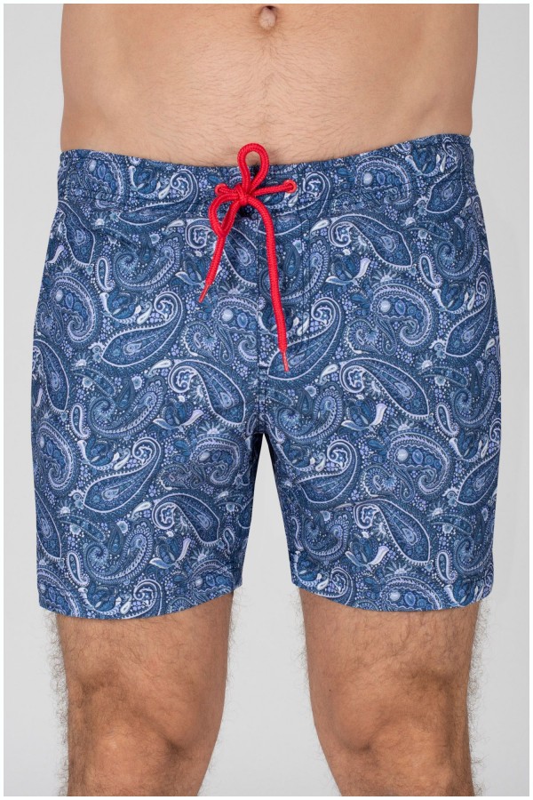 Plusman microvezel zwemshort met all-over paisleyprint. De zwembroek is sneldrogend en is voorzien van een  tailleband met elastiek en trekkoordjes in een contrasterende kleur. De grote maten swimshort heeft rechts een kleine achterzak.