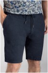 Bermuda van het merk North 56°4. De short is gemaakt van een elastische stof met een slubeffect, wat wil zeggen dat er garenverdikkingen in de stof zijn verwerkt. Dit geeft de korte broek een sportieve look. Daarnaast is ook de tailleband elastisch en kan deze met behulp van koordjes naar eigen smaak worden ingesteld. De linker broekspijp is voorzien van een merkopdruk.