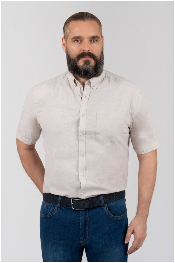 Linnen korte mouw overhemd van het merk Armada. Het vrijetijdsoverhemd heeft een effen kleur en een modieuze button down kraag. Links is het grote maten shirt voorzien van een opgestikte borstzak. Het plussize herenhemd is gemaakt van linnen en katoen waardoor het overhemd toch heerlijk licht en luchtig draagt en dus uitermate geschikt is voor de zomer zonder dat het heel veel kreukt.