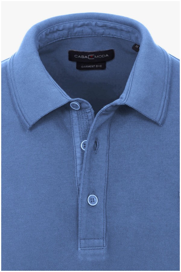 Korte mouw uni polo van het merk Casamoda. De polo is gemaakt van 100% katoen en door de garment-dye behandeling heeft de polo een stoere, used-look. Links heeft het grote maten poloshirt een tonaal borduur. De polokraag is voorzien van drie knoopjes. De ribstof aan de kraag en de mouweinden zorgen voor extra draagcomfort.