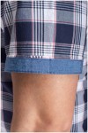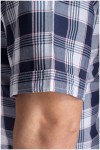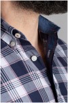 Korte mouw ruiten overhemd van het merk Armada. Het vrijetijdsoverhemd is afgewerkt met tonale knoopjes en een opgestikte borstzak met daarop een contrastborduur en badge. Zowel de omslag van de mouwen, de binnenkant van de button-down kraag als van de knopenlijst, is voorzien van een unikleurige chambray contraststof. De omgeslagen mouwen geven het overhemd daardoor een stijlvolle look. Het plussize herenhemd is gemaakt van 100% katoen.