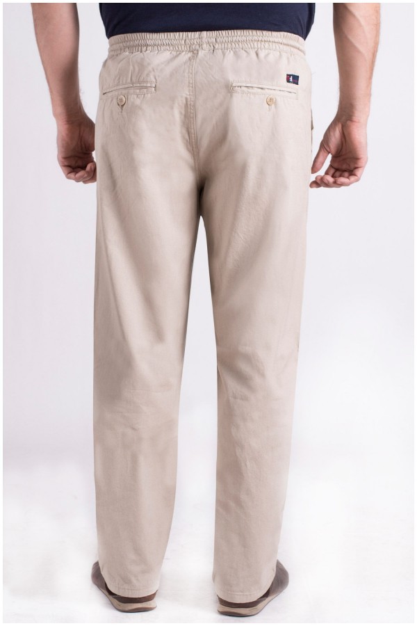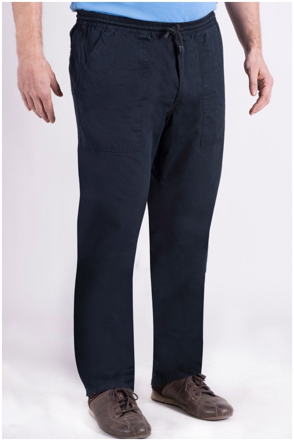 Vrijetijdsbroek van Forestal met elastische tailleband die met koordjes te verstellen is. Deze grote maten broek is voorzien van diepe steekzakken voor en 2 zakken op de achterkant. De XXL broek is gemaakt van dunne en zeer sterke stof van 100% katoen.