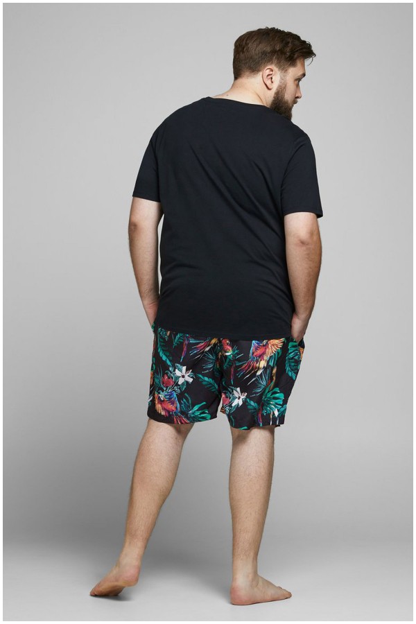 100% Microvezel zwembroek van het merk Jack & Jones. Deze grote maten zwemshort is gemaakt van gerecycled materiaal en heeft daarmee een uiterst duurzaam karakter. De swimshort heeft een print van flamingo's. De elastische tailleband kan naar wens worden versteld met een koord. De zwembroek is voorzien van twee steekzakken en een opgestikte achterzak.