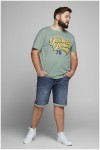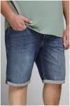 Elastische jeansbermuda van het merk Jack & Jones. De casual short is een 5-pockets model. De achterzakken zijn voorzien van tonale stiksels als modieus detail. Daarnaast is aan de achterkant van de broek een merklabel bevestigd en is de binnenzijde van de bermuda voorzien van een grote merkprint. De onderkant van de pijpen is omgeslagen. De grote maten stretchbermuda is gemaakt van katoen gemixt met o.a. elastaan, wat zorgt voor een comfortabele elasticiteit van de broek.