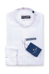 100% Linnen lange mouw vrijetijdsoverhemd van het merk Plusman. Het casual hemd is gemaakt van de typische zomerstof linnen en heeft een effen witte kleur. Aan de binnenkant van de maokraag, de mouwomslag en de binnenzijde knopenlijst, is een gekleurde contraststof met een dessin van bladeren bevestigd. Hierdoor krijgt het grote maten overhemd een extra zomerse en casual uitstraling. De tonale knoopjes maken deze casual look helemaal af. De mouwen kunnen na oprollen vastgezet worden door middel van een lusje met knoopje zodat de oprolmouwen goed blijven zitten.