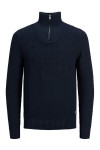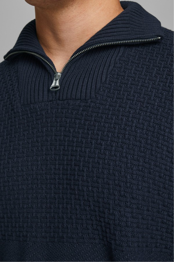 100% Katoenen trui van Jack & Jones. Deze grote maten trui heeft een hoge kraag om de kou buiten te houden en een halve ritssluiting in de kraag voor gemakkelijk aan- en uittrekken. In de stof is een structuur gebreid.