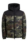 Gevoerde winterjas van Jack & Jones (Art.nr. 12173997). Dit grote maten gewatteerde jack heeft een camouflageprint met contrasterende schoudervullingen en een capuchon. De capuchon kan met praktische koorden op de ideale pasvorm worden afgesteld. De grote maten winterjas heeft 2 steekzakken.