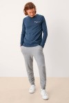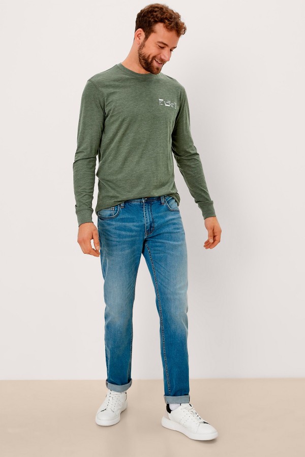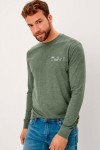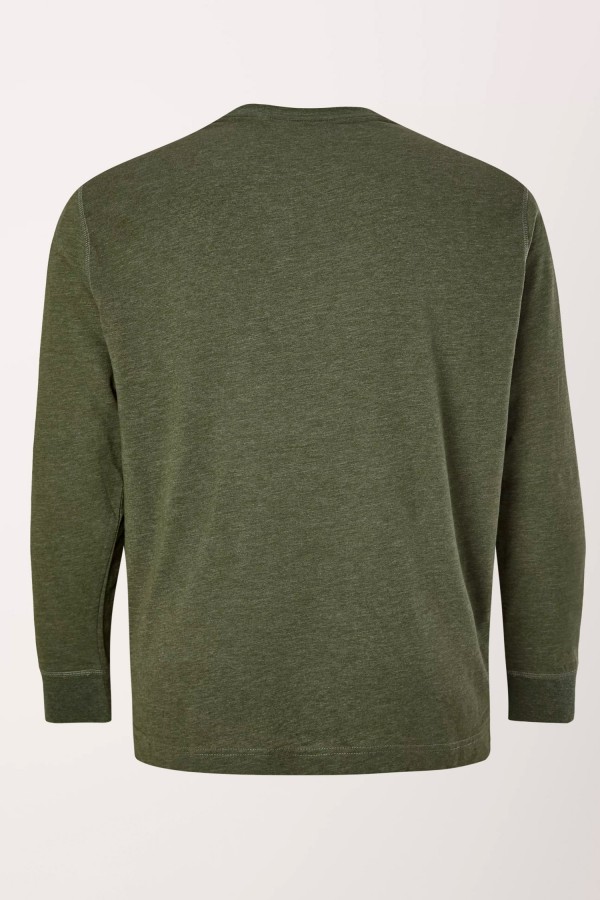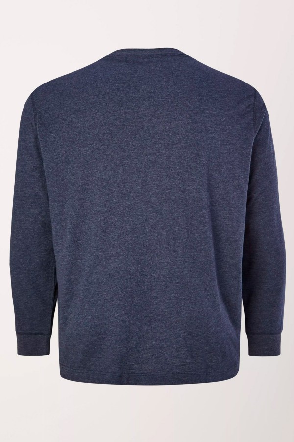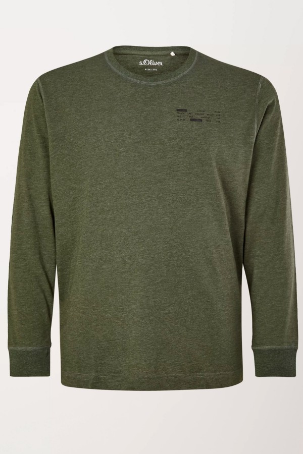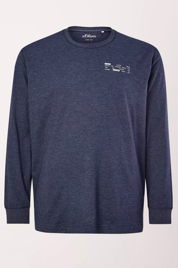 Lange mouw t-shirt van het merk s.Oliver. Deze grote maten longsleeves is gemaakt van een stof met slubeffect (garenverdikkingen) en de ronde hals en zoom zijn afgewerkt met dubbelgestikte naden, dit geeft het t-shirt een stoere uitstraling. Het uni t-shirt heeft links op de borst een kleine print met tekst. De manchetten van dit plus size t-shirt zijn voorzien van een elastische boord voor extra comfort.