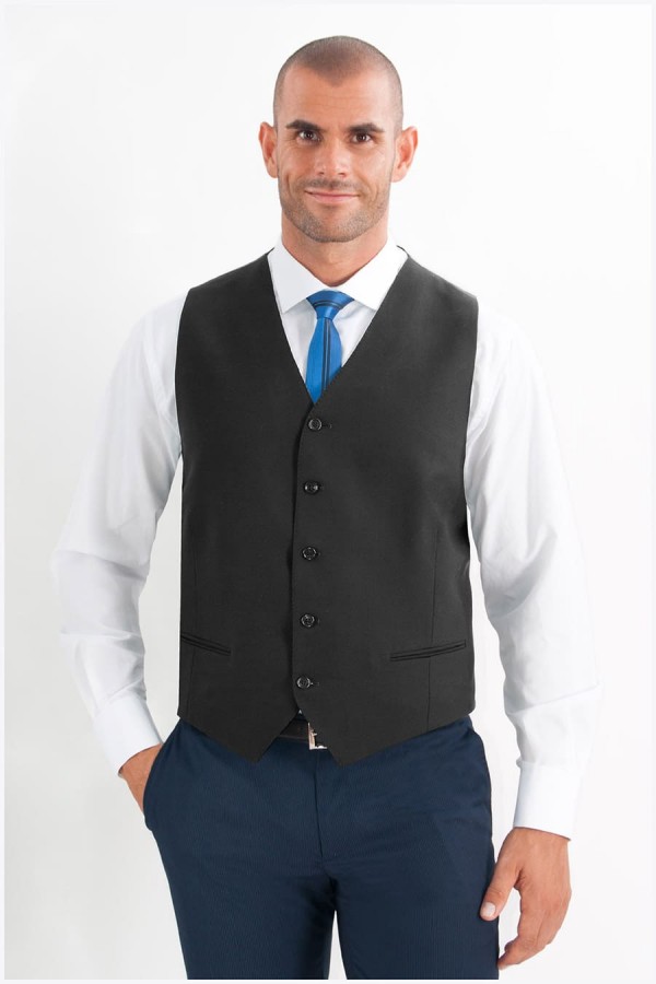 Gilet van Plusman gemaakt van een comfortabele wolmix. De sluiting van dit grote maten gilet bevat 5 knopen boven elkaar. Het gilet is ideaal te combineren met onze colberts.