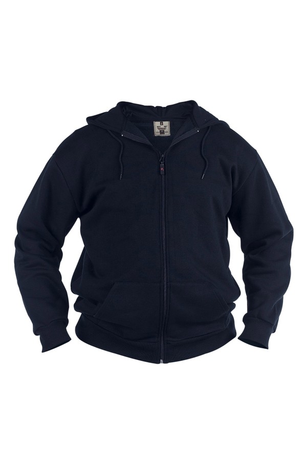 Uni sweatjack met ritssluiting en capuchon van het merk Rockford (Duke art.nr. Cantor, KS1609) gemaakt van fleece bestaande uit katoen en polyester. Deze grote maten hoodie heeft steekzakken aan de zijkant en ribboorden met elastiek aan de mouwen en aan de onderkant. Van binnen is het vest licht geruwd.