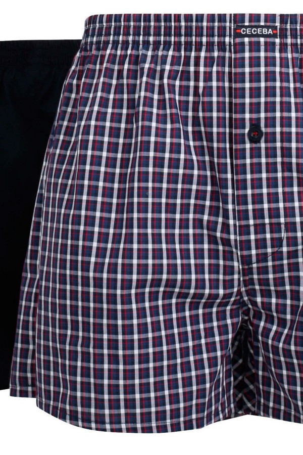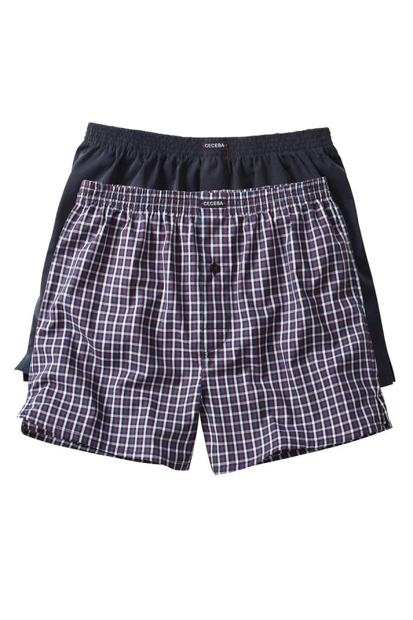2-Pack boxershorts van het merk Ceceba met een elastieken band. De grote maten boxershorts, voorzien van gulp met knoopje, zijn gemaakt van 100% katoenen poplin. In één verpakking zitten 2 boxershorts, 1 ruitje en 1 effen.
