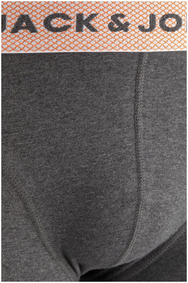 Set van 3 elastische boxershorts van het merk Jack & Jones. Deze grote maten boxershorts zijn gemaakt van een lichte jersey stof van een mix van katoen en elastaan wat garant staat voor een perfecte pasvorm. De regular fit pasvorm geeft extra ruimte rond het lichaam. Elke van de 3 XXL boxershorts heeft een andere grijs/zwart tint en elke onderbroek heeft ook een andere, gekleurde tailleband met daarop het Jack & Jones logo gedrukt.