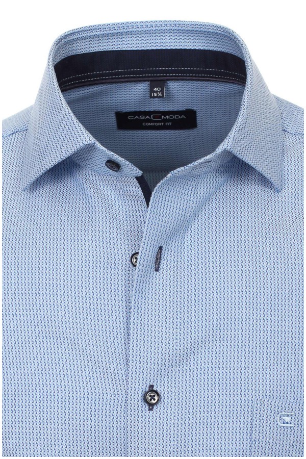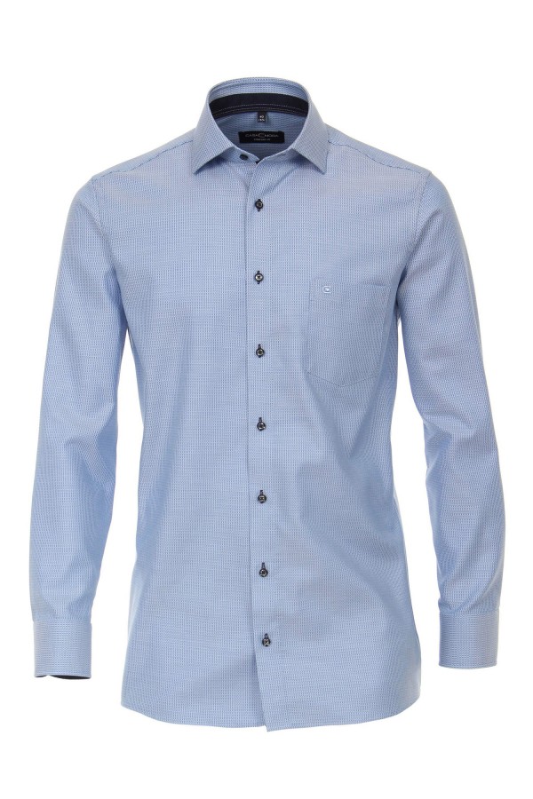 Businessoverhemd van het merk Casamoda met allover print, een button-downkraag en een opgestikt borstzakje met een klein geborduurd logo. Het grote maten dresshemd heeft een contraststof aan de binnenkant van de kraag en aan de omslag van de verstelbare manchetten. De knopen in paarlemoeroptiek geven dit shirt een zeer luxe uitstraling. Gemaakt van 100% katoen. Dit overhemd hebben wij ook in een in het assortiment.