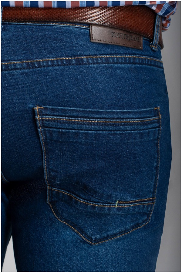 Stretch-jeansbroek van het merk Koyote. Deze grote maten jeans komt in een klassieke 5-pocket uitvoering met diverse modieuze details zoals gekleurde stiksels en "used-look" details langs de zakken en op de pijpen. De XXL spijkerbroek is gemaakt van een heerlijk zachte en flexibele denim die zeer comfortabel is om te dragen.