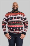 Vrolijke kersttrui van het merk D555. Deze grote maten trui is rondom voorzien van veelkleurige een jacquard print met Kerst als thema. Zo valt er te lezen "Merry XMas" en zijn er kerstbomen en de kerstman afgedrukt. De XXL kersttrui is voorzien van een ronde hals die net als de manchetten en de zoom is afgewerkt met een ribboord voor extra draagcomfort.