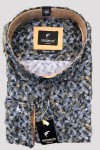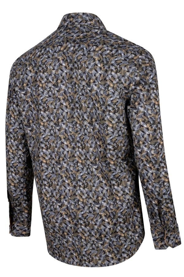 Lange mouw overhemd van het merk Fortunato. Het grote maten overhemd is gemaakt van 100% katoen en heeft een allover dessin van bladeren. De binnenzijde van de kraag en de manchetten is voorzien van een uni contraststof. Het XXL shirt is afgewerkt met tonale knoopjes.