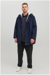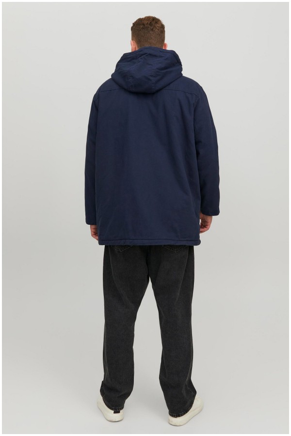 Gevoerde winterjas uit de Plus Size collectie van Jack & Jones. Deze grote maten parka heeft een met koordjes verstelbare gevoerde capuchon en een lekker warm bontje langs de kraag. De winterjas is gemaakt van 100% katoen in een matte stof. De ritssluiting is volledig verborgen onder de knoopsluiting. De XXL parka heeft zijzakken met ritssluiting en een binnenzak. De jas is waterbestendig.