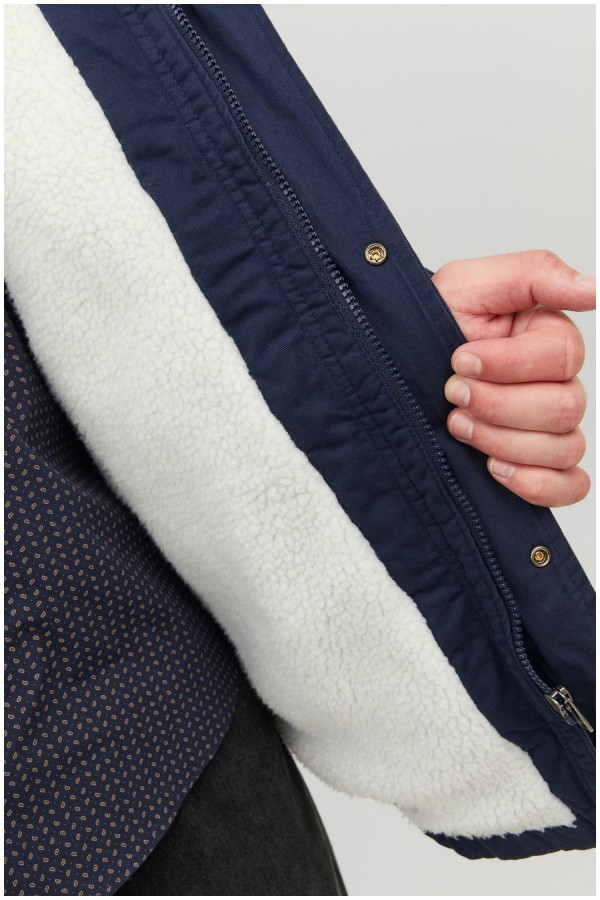 Jack & Jones gevoerde katoenen winterjas met capuchon.