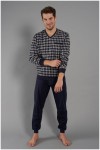 Deze lange pyjama van het merk Götzburg bestaat uit een lange mouw pyjamahemd met een allover print van geometrische symbooltjes en een effen lange pyjamabroek. De pyjamatop heeft een v-hals en een borstzakje. De mouwen zijn afgewerkt met ribboorden voor extra draagcomfort. Ook de pyjamabroek is afgewerkt met boorden aan de onderkant van de pijpen. De grote maten pyjama is gemaakt van 100% katoen in een heerlijk zachte, huidvriendelijke single jersey kwaliteit.