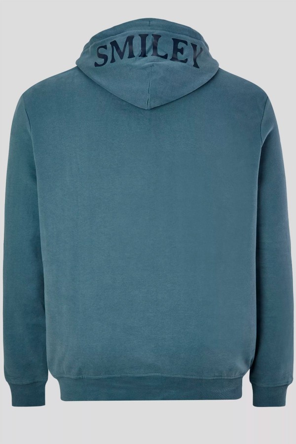 Sweater uit de s.Oliver collectie. De grote maten hoodie is gemaakt van 100% katoen in een comfortabele sweatkwaliteit. Links op de borst is de sweathoodie bedrukt met een smiley print. De capuchon van het uni sweatshirt is afgewerkt met trekkoordjes en groot bedrukt met het woord "smiley". De geribde boord aan de manchetten en de zoom biedt extra draagcomfort.