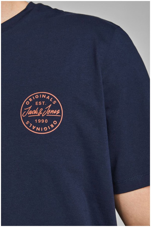 Jack & Jones t-shirt met korte mouwen en een ronde hals. Dit grote maten t-shirt is gemaakt van 100% katoen en is voorzien van een kleine ronde merkprint op de borst.