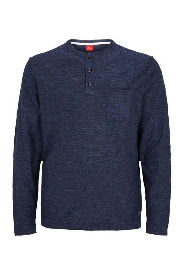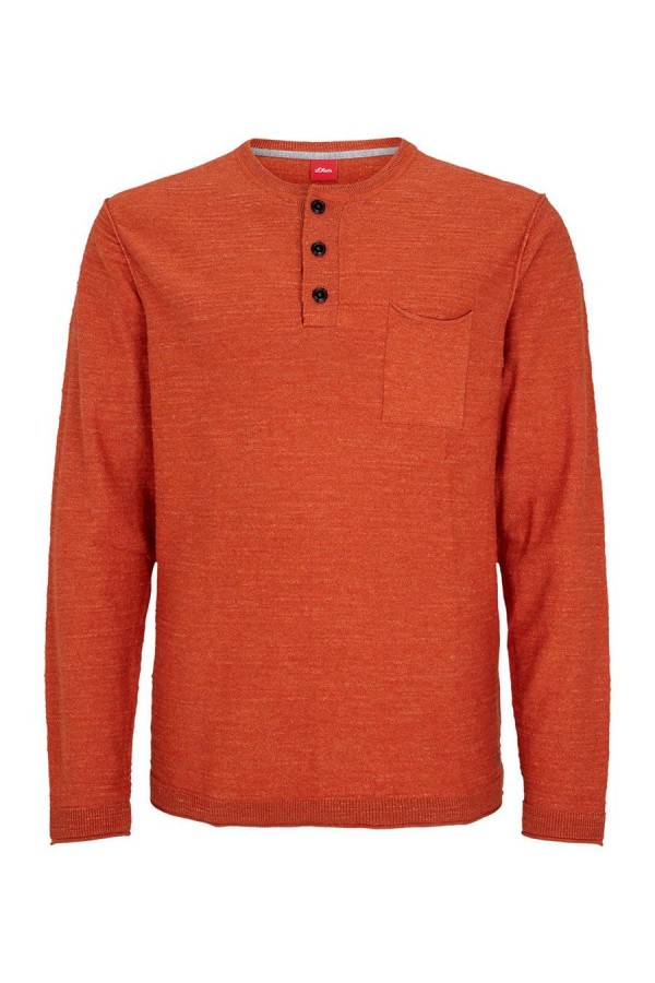 Uni T-Shirt van s.Oliver met lange mouwen en een knoop-hals..